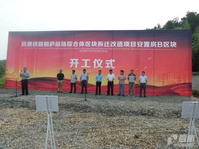 杭黃鐵路桐廬站場綜合體區塊拆遷改造項目安置房B區塊的開工儀式于2015年6月24日隆重舉辦。在喜慶的音樂聲中,本區塊的開工儀式正式啟動。舞臺上各級領導及嘉賓代表紛紛進行本次項目儀式致辭,隨后在一片掌聲中,開工儀式圓滿完成。