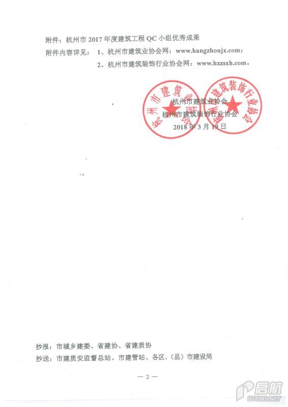 2017年度杭州市建筑工程QC小組優秀成果二等獎